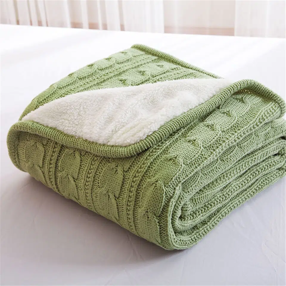 La Couverture Tricotée Grosse Maille Polaire Vert Préféré est polyvalente et s’adapte à toutes les saisons. En hiver, elle vous enveloppe de sa chaleur moelleuse, vous protégeant du froid glacial.
