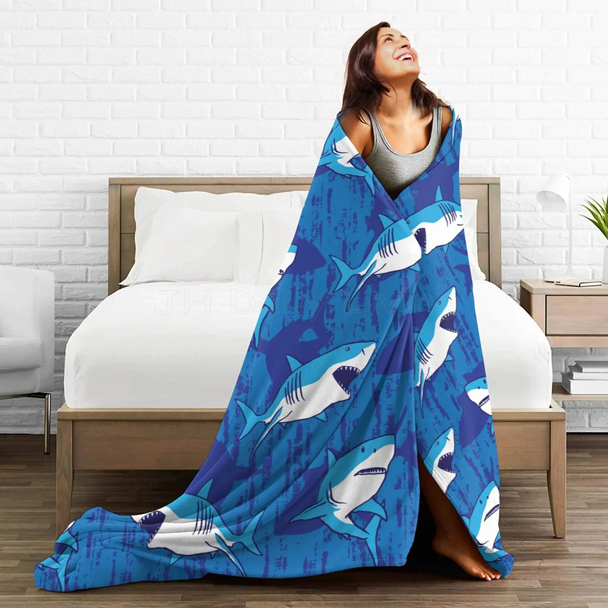 Adoptez ce plaid unique et laissez les requins veiller sur vos instants de tranquillité.