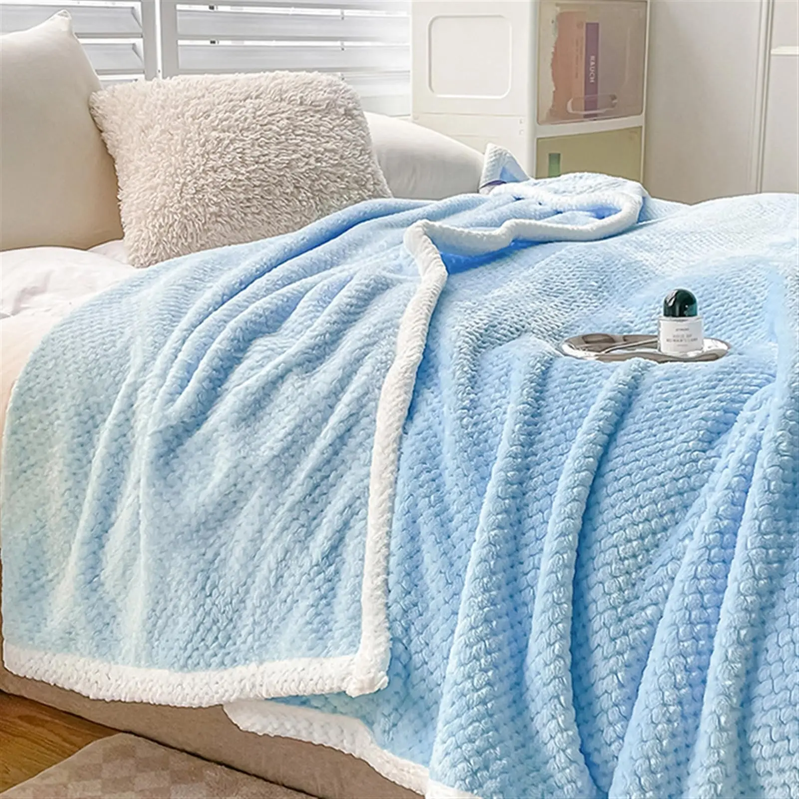 Ce plaid jacquard bleu ne se distingue pas seulement par son apparence, mais aussi par le confort incomparable qu’il procure.